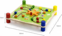 Das Holzdidaktikspiel Tropf und Folge von Viga entwickelt Geschicklichkeit und Koordination bei Kindern. Das Spiel enthält mehrere Elemente, darunter eine Holzplatte, ein drehbares Zahnrad und bunte Stifte, die Spaß und Lernen in einem bieten.