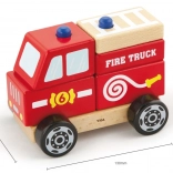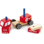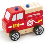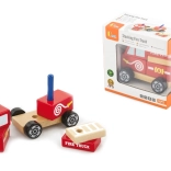 Setze die einzelnen Holzteile auf das Fahrgestell und gestalte dein eigenes Feuerwehrauto. Kinder üben Schritt für Schritt Geduld und Koordination.