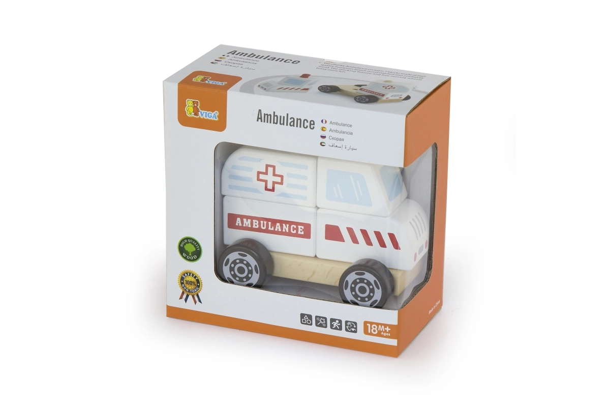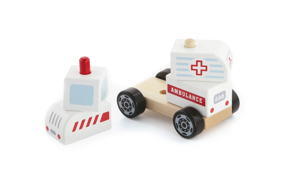Holz-Steckpuzzle und fahrbares Fahrzeug – Krankenwagen