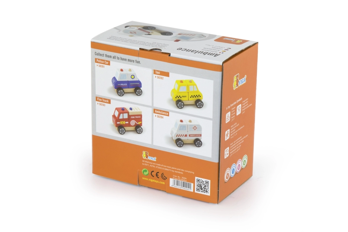 Dieser Holz-Krankenwagen ist eine großartige Kombination aus Puzzle und fahrbarem Auto. Kinder können die einzelnen Teile zu einem Krankenwagen zusammensetzen und anschließend dank der leicht rollenden Räder losfahren. Robustes Holz, hochwertige Farben und abgerundete Kanten gewährleisten sicheres Spielen und eine lange Lebensdauer.