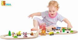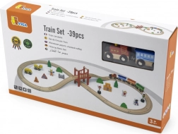 Die Holzeisenbahn bietet ein komplettes Set mit 39 Teilen, das endlose Aufbaumöglichkeiten und die Entwicklung der kindlichen Fantasie ermöglicht.