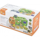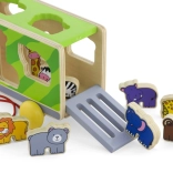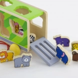 Der LKW lässt sich an der Schnur nachziehen und dient zugleich als cleveres Steckspiel. Kinder nutzen Bewegung und logisches Denken, während sie die passenden Öffnungen für die Tierchen finden.