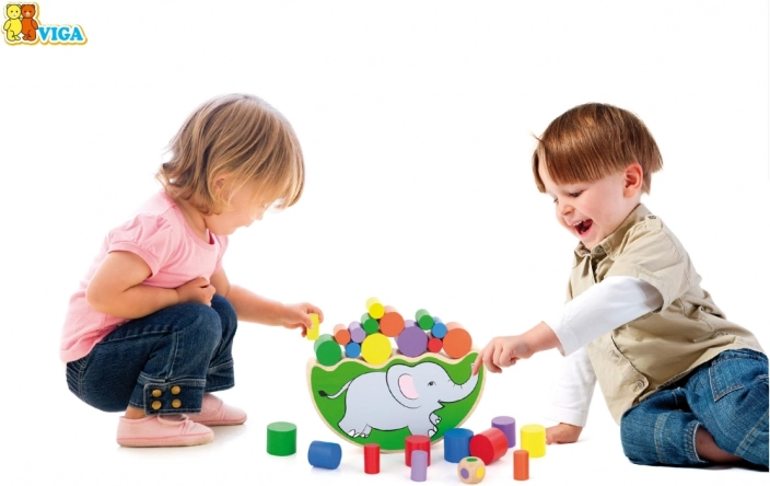 Die gewölbte Elefantenbasis und verschieden große Zylinder lehren Kinder, sensibel auszubalancieren und die Teile präzise zu platzieren.