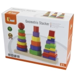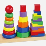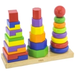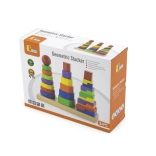 Das Holzpyramidenpuzzle ist ein ideales Spielzeug für Kinder ab 2 Jahren, das die Motorikentwicklung und das Erkennen von Formen durch bunte geometrische Teile fördert.