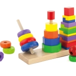 • Interaktives Stapeln: Bunte Teile können kombiniert und auf drei unterschiedliche Stifte gestapelt werden.
