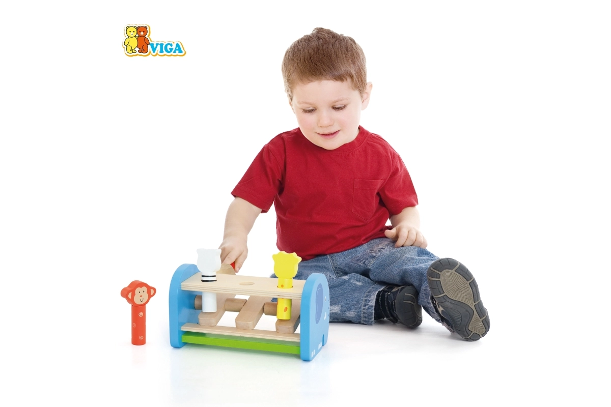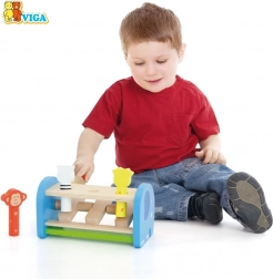 Schläge mit dem Hammer trainieren Griff, Kraft und Hand-Auge-Koordination, während das Prinzip von Ursache und Wirkung logisches Denken unterstützt.