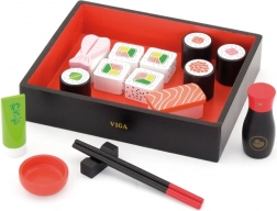 Das hölzerne Sushi Set fördert die Kreativität und hilft, die feinmotorischen Fähigkeiten der Kinder zu entwickeln.