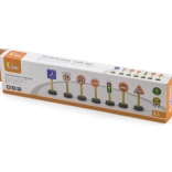 Dieses Gedächtnis- und Bildungsspiel enthält 7 verschiedene Holz-Verkehrszeichen, die Kindern helfen, grundlegende Verkehrsregeln zu erlernen. Das Spielzeug ist ideal für Kinder ab 3 Jahren und ergänzt perfekt jeden Bausatz oder jede Eisenbahnstrecke.
