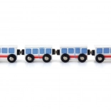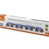 Der Schnellzug ergänzt die meisten Holzeisenbahnen perfekt und erweitert die Spielmöglichkeiten um eine moderne, von Hochgeschwindigkeitszügen inspirierte Garnitur.