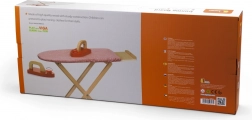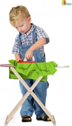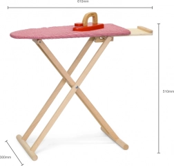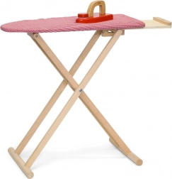 Das Set umfasst ein klappbares Bügelbrett mit Ablage und ein Holzbügeleisen mit drehbarem Knopf für noch mehr Spielspaß. Dank der kompakten Maße lässt es sich leicht verstauen und passt in jedes Kinderzimmer.