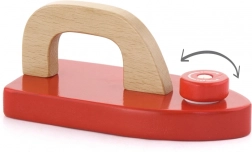 • Holzbügeleisen mit drehbarem Knopf – unterstützt das Nachahmungsspiel.