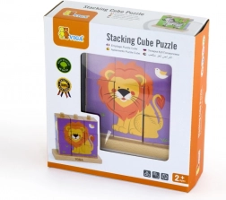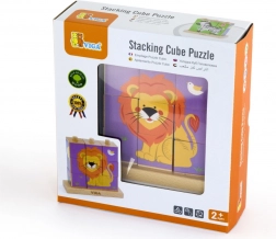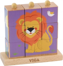 Die Viga Safari-Steckwürfel sind ein zeitloses Spielzeug, das Kinder spielerisch zum Lernen anregt. Neun glatt geschliffene Würfel auf einer stabilen Basis ermöglichen das Zusammenstellen von vier bunten Tiermotiven. Dank der kippbaren Stifte lassen sich die Würfel leicht drehen, sodass Kinder schneller das richtige Teil finden.