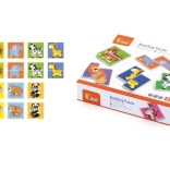 Dieses Set enthält Holzpuzzleteile mit Tieren, die als passende Paare zusammengesteckt werden. Kinder trainieren spielerisch die Hand-Auge-Koordination, Konzentration und visuelle Wahrnehmung. Die Teile sind ausreichend groß für kleine Kinderhände und haben glatte, sichere Kanten.
