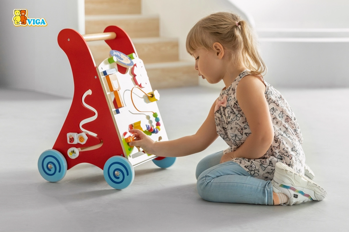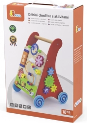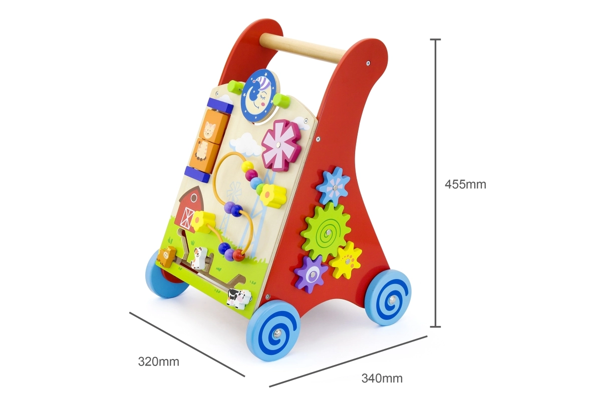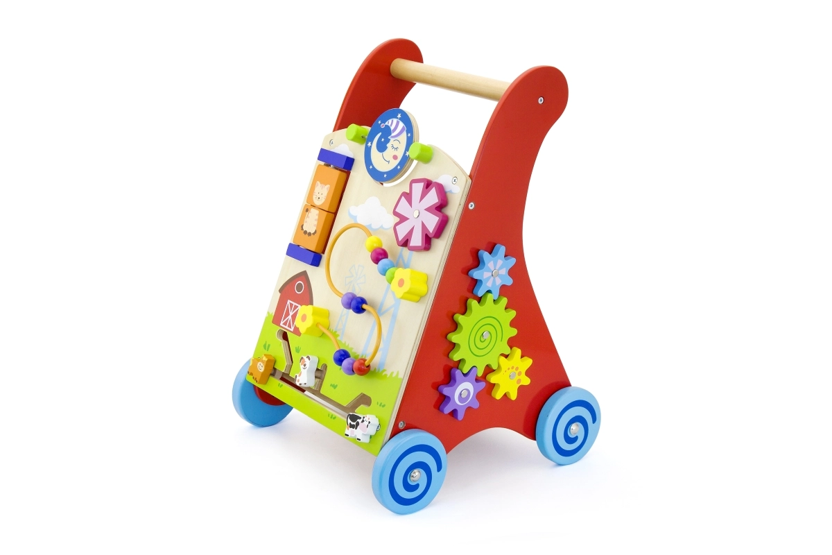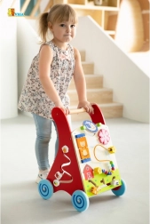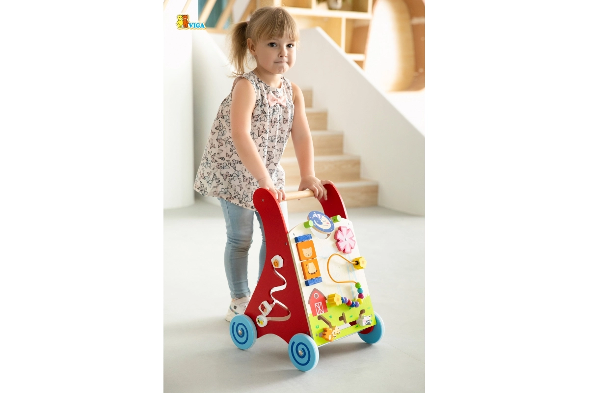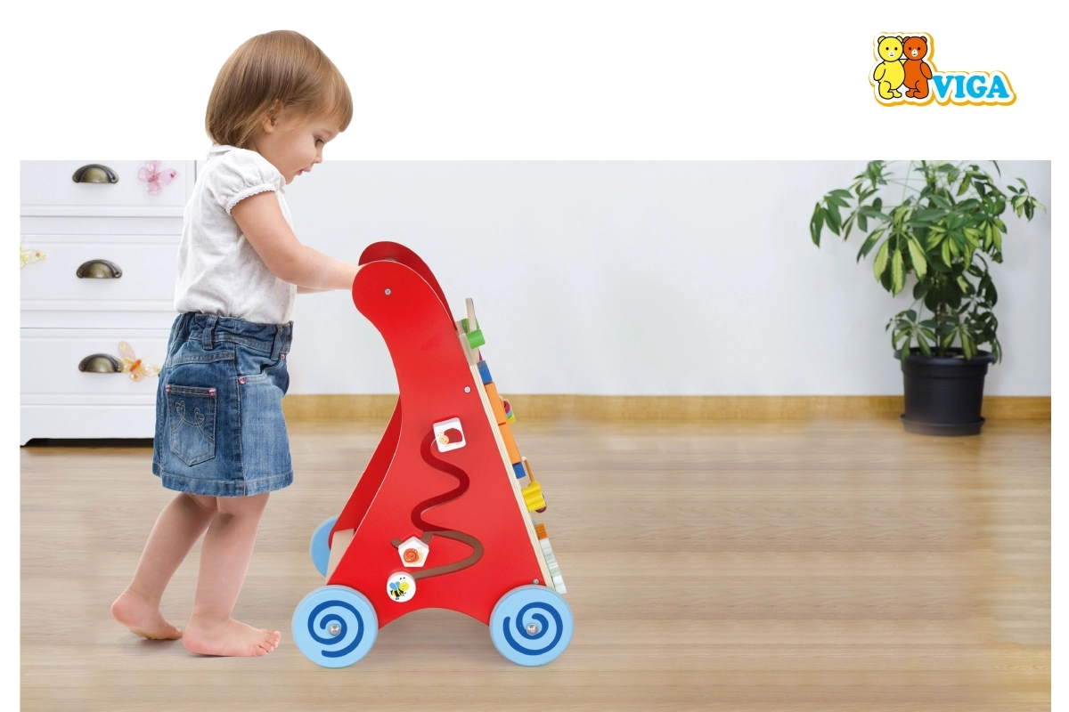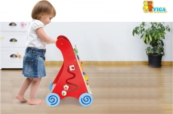 Hölzerlicher Lauflernwagen und Aktivitätentafel für Kleinkinder von Viga, rot