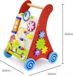 Lauflernwagen + Aktivitätentafel (Zahnräder, Schiebeelemente, Perlen-Schleife, drehbare Scheiben, Windrädchen)