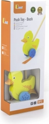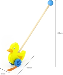 Holz-Schiebeente an einem Stab ist ein einfaches, aber effektives Spielzeug, das jedes Kind lieben wird. Es ist ein klassisches Spielzeug, das viele Vorteile bietet. Die entzückende gelbe Ente bewegt beim Gehen energisch ihre Füße, was die Kinder zum Spazierengehen animiert. Dieses Spielzeug wird in einer ästhetischen Box mit Fenster verpackt, durch das man die Ente sehen kann. Im Inneren befindet sich ein Stab mit Griff, der perfekt in die kleine Hand eines Kindes passt. Der Stab ist nicht fest angebracht, was die Lagerung erleichtert. Das gesamte Spielzeug besteht aus Buchenholz und ist mit ungiftigen Farben in lebendigen Farben bemalt, die die Aufmerksamkeit erregen und zum Spielen anregen, was viel Freude beim Spielen bringt.