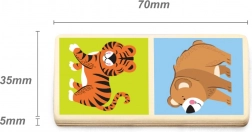 Entdecken Sie die bunte Welt der Tiere mit dem Holzdomino, das so entworfen ist, dass es Spaß und Bildung in einem bietet. Jeder Stein des Dominos hat auf einer Seite eine wunderschöne Illustration verschiedener Wildtiere, was Kindern hilft, ihre Umgebung kennenzulernen.