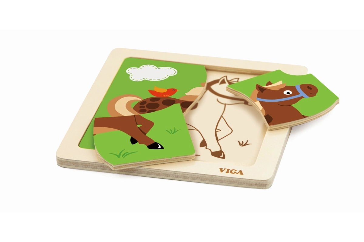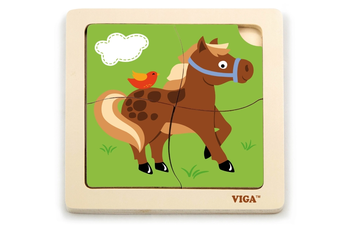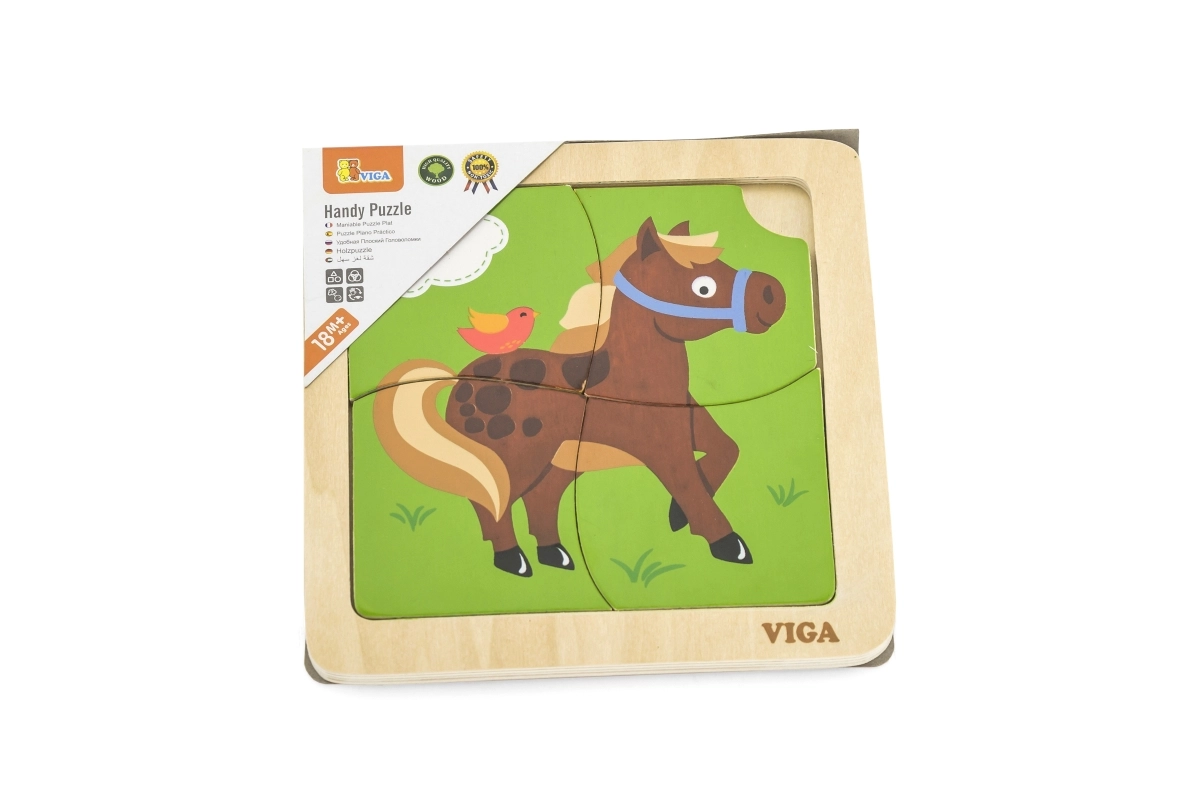 Dieses niedliche Holzpuzzle mit Pferdemotiv begeistert die Kleinsten ab 18 Monaten. Dank der nur 4 großen Teile, der stabilen Holzgrundplatte und den leuchtenden Farben lernen Kinder das Zusammensetzen leicht und mit Freude und fördern dabei ihre Feinmotorik, Hand-Auge-Koordination und Formwahrnehmung.