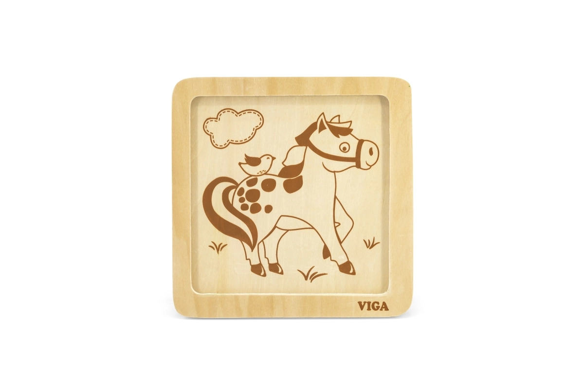Dieses kompakte Holzpuzzle mit fröhlichem Pferd ist die ideale erste Puzzle-Erfahrung für Kleinkinder. Große, glatte Teile liegen gut in kleinen Händen und werden in den stabilen Holzrahmen eingesetzt, der das richtige Platzieren erleichtert.
