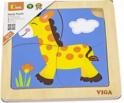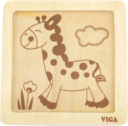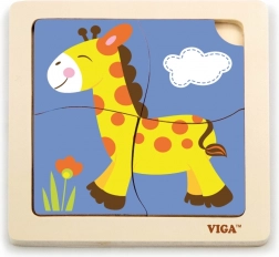 Holzpuzzle der Marke Viga für Kinder ab 12 Monaten ist ein ideales Spielzeug sowohl für zu Hause als auch für den Kindergarten. Es enthält vier thematische Teile und eine Grundplatte, auf der Kinder nach Zeichnungen ein Bild zusammenstellen können. Sichere Farben und natürliche Materialien sorgen für Sicherheit und Spaß.