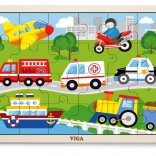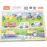 Dieses Holzpuzzle mit Abbildungen von Verkehrsmitteln ist eine hervorragende Wahl als erstes „größeres“ Puzzle. Mit 24 Teilen bietet es genau die richtige Herausforderung – es unterstützt die Konzentration und die Freude am fertigen Bild mit den Maßen ca. 27,5 × 20 cm. Farbige Illustrationen von Fahrzeugen (Krankenwagen, Feuerwehrauto, Polizeiwagen, Schiff, Flugzeug u. a.) motivieren Kinder ganz natürlich zum wiederholten Spielen.