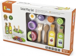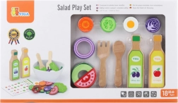 Entdecken Sie das spielerische Holz-Salatset mit insgesamt 36 Teilen, das Feinmotorik, Vorstellungskraft und Wissen über gesunde Ernährung fördert. Enthält Schüssel, Gemüse, Besteck und weiteres Zubehör – ideal für Rollenspiele für Kinder ab 18 Monaten.
