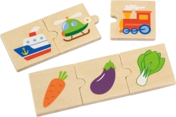 Kinder verbinden die Teile zu logischen Trios (Obst, Gemüse, Tiere, Fahrzeuge) und festigen so ihr Verständnis von Zusammenhängen, erweitern ihren Wortschatz und trainieren das logische Denken.