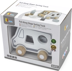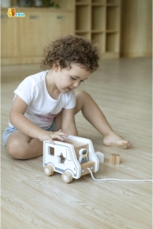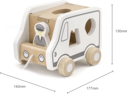 Dieses Holz-Nachziehspiel in Form eines Lastwagens vereint zwei beliebte Aktivitäten – das Nachziehen an der Schnur und das Einsetzen von Formen. Kinder entwickeln Formenkenntnis und räumliches Wahrnehmen, während sie sich bewegen und in fantasievolles Spiel mit dem niedlichen Auto eintauchen.