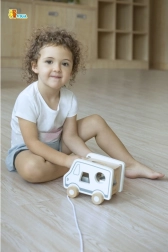 Die stabile Schnur ermöglicht es Kindern, das Auto überallhin mitzunehmen. Beim Nachziehen trainieren sie Bewegungskoordination und Gleichgewicht.