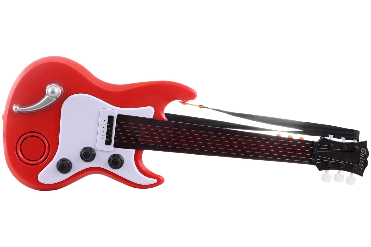 Diese elektronische Kindergitarre ist eine großartige Wahl für die ersten musikalischen Schritte. Dank der kompakten Größe von ca. 55 cm liegt sie gut in kleinen Händen und motiviert Kinder, Rhythmus, Gehör und Kreativität zu entwickeln. Die Stromversorgung über 3× AA-Batterien (nicht im Lieferumfang enthalten) ermöglicht Spielen jederzeit und überall, ohne eine Steckdose zu benötigen.