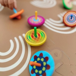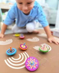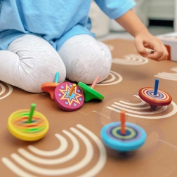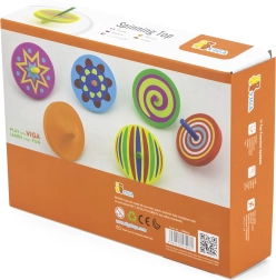 Bunte Holz-Kreisel von VIGA begeistern jedes Kind beim Spielen. Beim Drehen der Kreisel entstehen interessante Muster, die den Kindern gefallen.