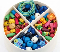 Das Set beinhaltet eine Holzbox mit Fächern, ideal zur Aufbewahrung von Perlen und Schnüren.