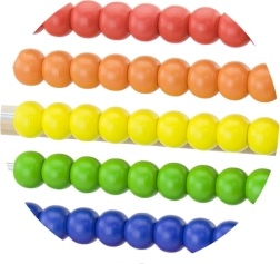 Zehn Reihen in kräftigen Farben fördern die visuelle Wahrnehmung, das Sortieren und erste Rechenaufgaben.