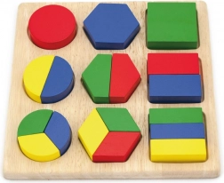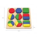 Das Einsetzen der Formen in die passenden Aussparungen trainiert die Augen-Hand-Koordination, Geduld und logisches Denken.