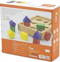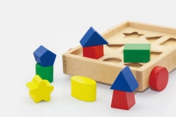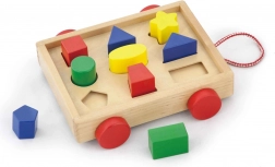 Der Wagen enthält verschiedene geometrische Formen, mit denen Kinder spielerisch lernen, unterschiedliche Formen zu erkennen.