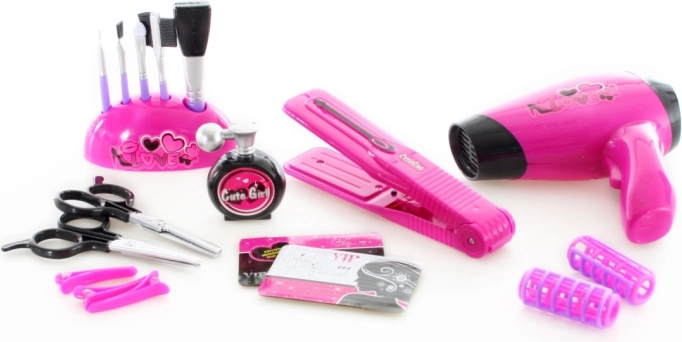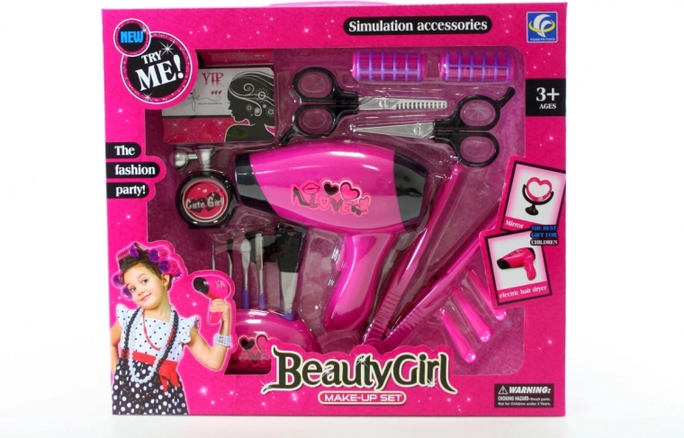 Dieses Kinder-Schönheitsset bietet alles, was kleine Friseurinnen für Frisuren und Salon-Rollenspiele brauchen. Der Spielzeugföhn wird mit Batterien betrieben und das Glätteisen leuchtet, was dem Spiel ein realistisches Erlebnis verleiht und zugleich absolut sicher für Kinder ist.