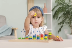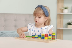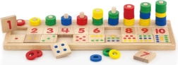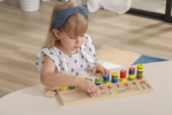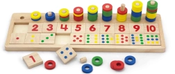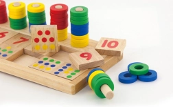 Mit bunten Ringen und nummerierten Plättchen können Kinder ihre mathematischen Fähigkeiten und numerisches Denken entwickeln.