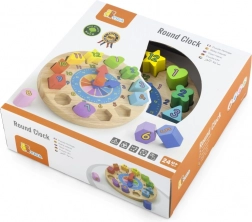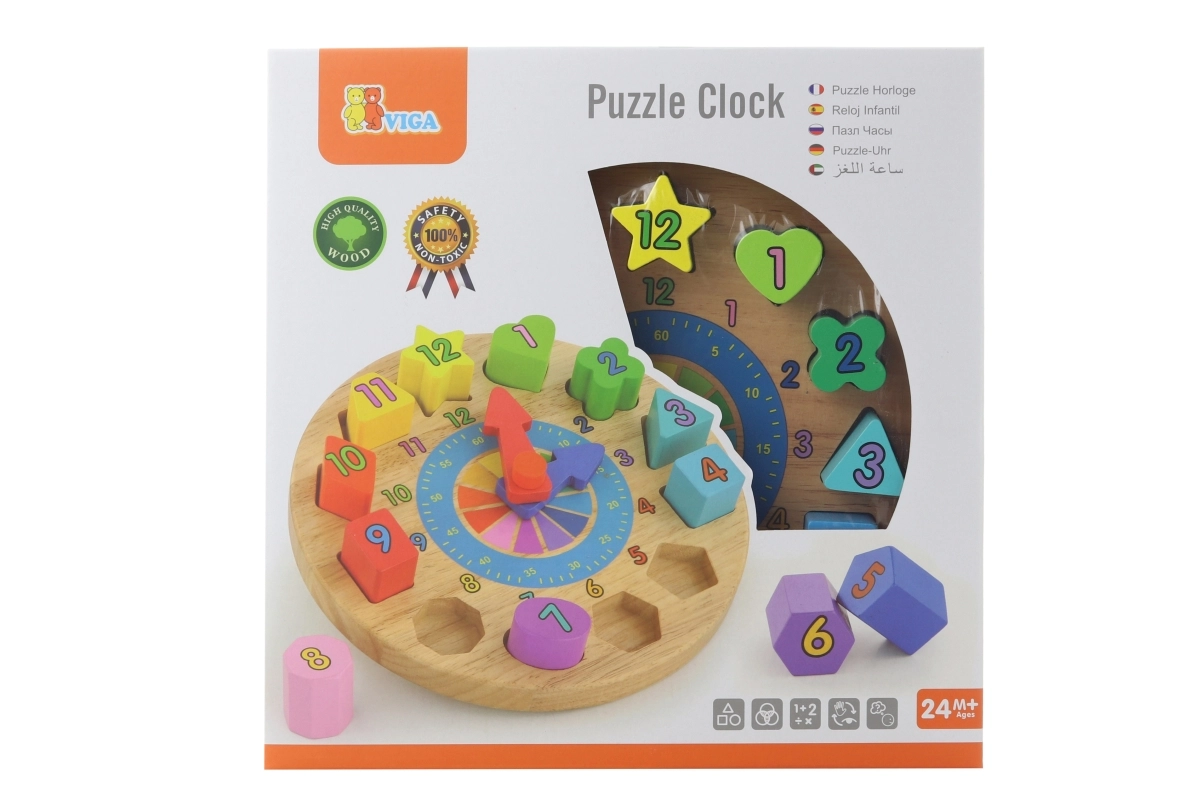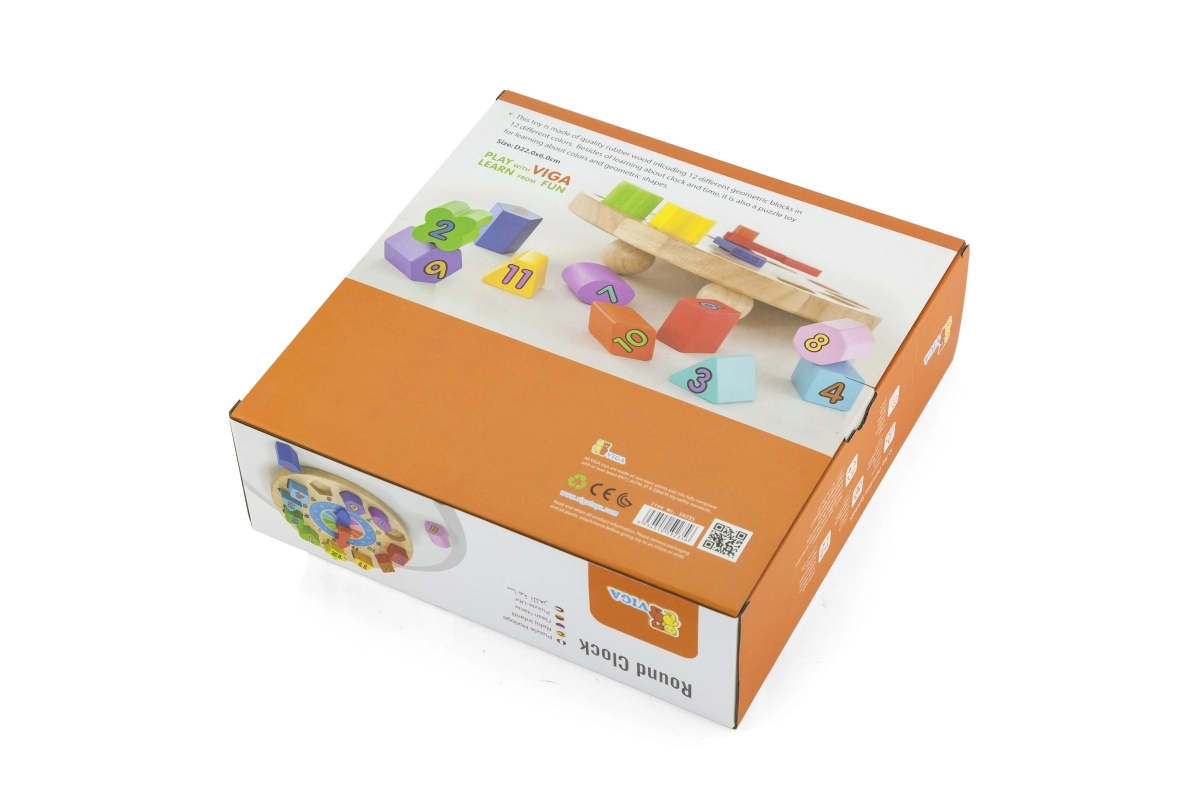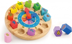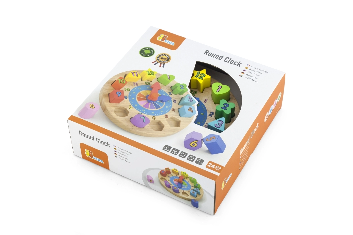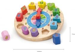 Die Uhr hat kompakte Maße von etwa 22 × 6 cm und im Set finden Sie 12 verschiedene Formen in kräftigen Farben mit aufgedruckten Zahlen. Ein großartiger Helfer für die erste Begegnung mit der Zeit sowie für die Förderung von Geduld und Konzentration.