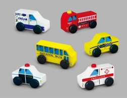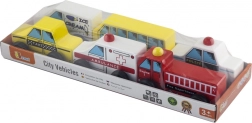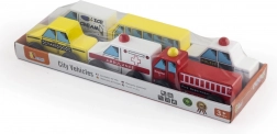 Kinder-Set aus Holzautos bietet sechs verschiedene Fahrzeuge für ein spielerisches und lehrreiches Erlebnis. Perfekt zur Förderung der Fantasie und zum Verständnis für städtische Dienstleistungen.