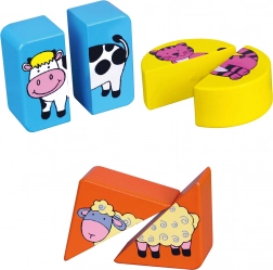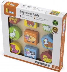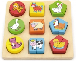 VIGA bietet Holzpuzzle mit neun farbenfrohen Teilen an, mit denen Kinder Bilder von verschiedenen Tieren wie Kühen, Enten und Kaninchen zusammensetzen können. Das Spiel fördert die motorischen Fähigkeiten und das Erkennen von Farben und Formen. Dank der sicheren und ungiftigen Farben sind diese Puzzle ideal für kleine Kinder.