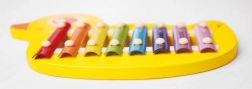 Dieses niedliche Kinderxylophon in Entchenform begeistert mit kräftigen Farben und einer ergonomischen Form mit Tragegriff. Die farbigen Metallplättchen erzeugen klare Töne, die Kinder motivieren, Rhythmus und erste Melodien zu entdecken.
