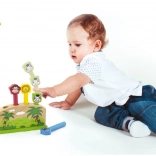 Durch das Drücken der Stifte trainieren Kinder Finger und Handgelenk, üben Präzision und verstehen das Prinzip von Ursache und Wirkung, wenn die Tierfiguren herausspringen.