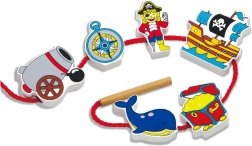 Ein unterhaltsames Set für die Kleinsten mit Piratenmotiv, das die Feinmotorik, die Hand-Auge-Koordination und die Kreativität fördert. Enthält 12 Holzblöcke und eine lange Schnur zum Auffädeln, verpackt in einer praktischen Box – dient als Aufbewahrungsbox. Geeignet ab 24 Monaten.