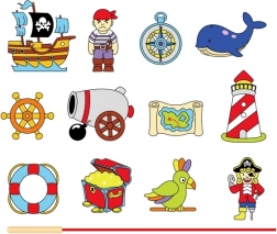 • Piratenmotive: Schiff, Pirat, Steuerrad, Schatz und weitere farbenfrohe Elemente unterstützen thematisches Spiel.