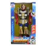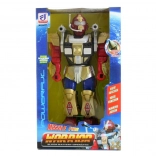 Dieser batteriebetriebene Kunststoffroboter ist das ideale Spielzeug für Kinder ab 3 Jahren. Licht- und Soundeffekte fesseln das Kind und regen seine Vorstellungskraft an. Der Roboter kann gehen, und seine interaktiven Bewegungen umfassen Drehen sowie Schwert- und Schildbewegungen.