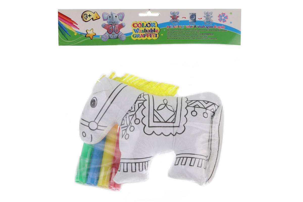 Ausmal-Pferd – abwaschbares Plüschtier mit Stiften