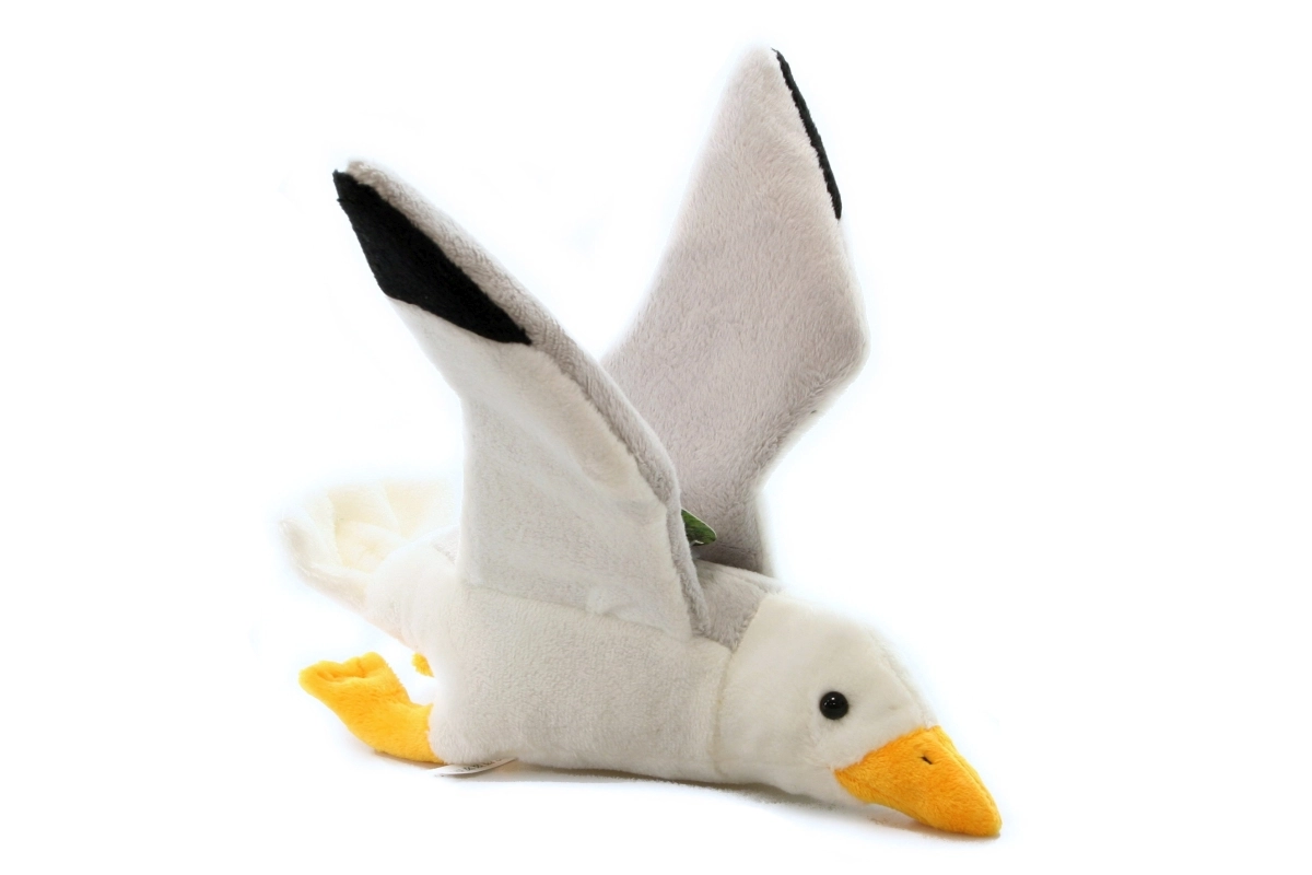 Die niedliche Plüschmöwe begeistert kleine und große Tierliebhaber. Sie hat verstärkte Flügel für bessere Form und Spielspaß, ist angenehm weich und geeignet ab 0 Jahren. Ideal als Kuscheltier fürs Bettchen und als Deko im Kinderzimmer.