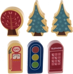Zum Set gehören auch Zubehör wie Holzfiguren, Fahrzeuge und Dekorationselemente wie Bäume und Straßenelemente. Das sehr detaillierte Design verleiht dem Spiel ein realistisches Gefühl und unterhält Kinder aller Altersgruppen ausgezeichnet.