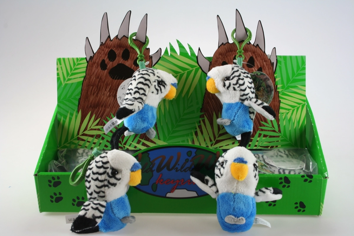 Dieser weiße Plüsch-Wellensittich bringt Freude in jeden Schritt. Dank des praktischen Rings lässt er sich leicht an Schlüssel, Schulrucksack oder an den Reißverschluss einer Jacke befestigen. Die weiche Oberfläche und die detailreiche Verarbeitung sorgen für eine angenehme Optik und Haptik.
