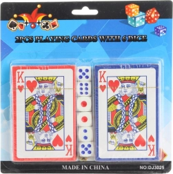 Jokerkarten mit zwei Decks und einem Würfelset